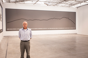 Hamish Fulton , 1946an Londresen (Ingalaterra) jaioa, Canterburyn bizi eta lan egiten du. Hammersmith College of Art, St. Martin's School of Art eta Royal College of Art (RCA) erakundeetan ikasi zuen, beste erakunde ospetsu batzuen artean. 1970eko hamarkadaren hasieratik, munduan zehar oinez bidaiatu du, 24 herrialde, ehunka kilometro eta milaka urrats zeharkatuz. Berarentzat, ibiltzea funtsezkoa da; ibiltzearen ekintza iragankorra artelana da. Fultonen lana Amerikako Land Art-etik bereizten da bere leuntasunean, intimitatean eta baliabideen ekonomia handian. Paisaia argazkiatzen du esku-hartzerik edo artifiziorik gabe. |