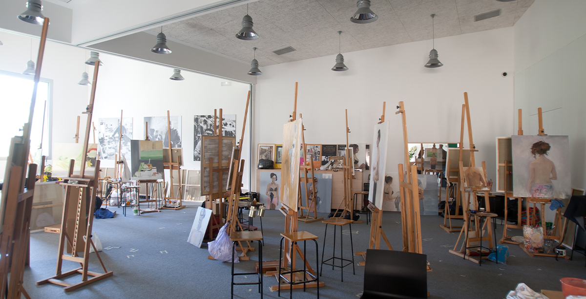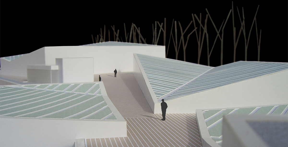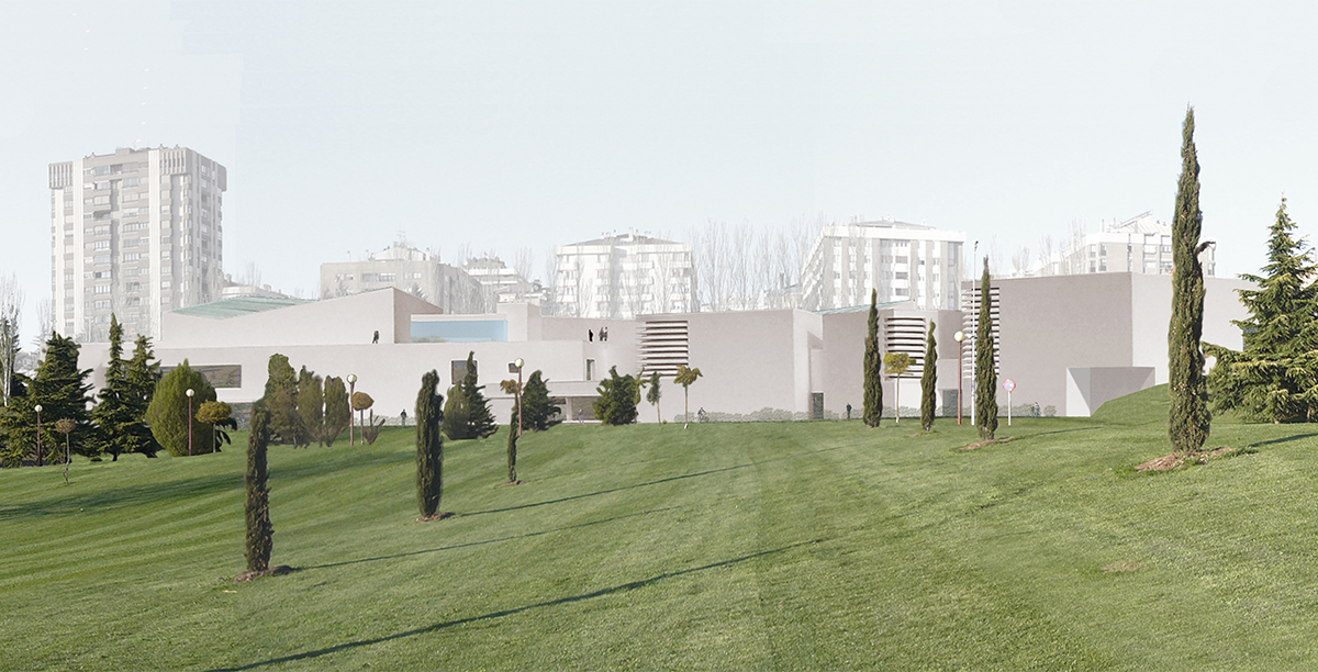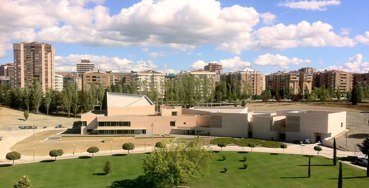Rafael Moneori, Pritzker saria irabazi zuen arkitekto espainiar bakarrari (1996), enkargatu zioten proiektua, eta horretarako abstrakzio ukitu bat txertatu nahi izan zuen, Antoni Tàpies eta Pablo Palazuelo bezalako artisten estetikarekin eta arte zentroan dauden arte garaikideekin bat etorriz. Eraikinak unibertsitate-campuseko bi muinoen arteko harana hartzen du, biak lotuz; beraz, inguruko ingurunearekiko errespetua eta integrazioa eraikinaren ezaugarri nagusiak dira.